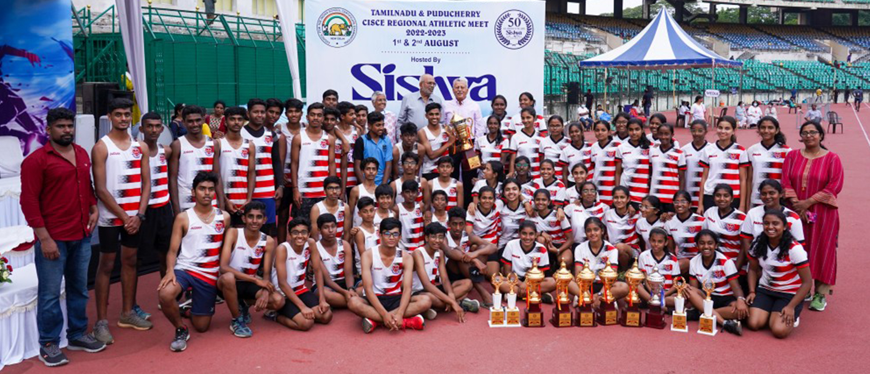 43 schools and over 1000 athletes from all over Tamil Nadu and Puducherry gathered at the Jawaharlal Nehru stadium to participate in the prestigious CISCE regional athletic meet. The CISCE Regional Athletic Meet 2022-23 was taking place after a break of three years owing to the pandemic and was hosted by Sishya, Adyar. The school, celebrating its 50th anniversary did a remarkable job of organizing the event that took place over August 1st and 2nd 2022.