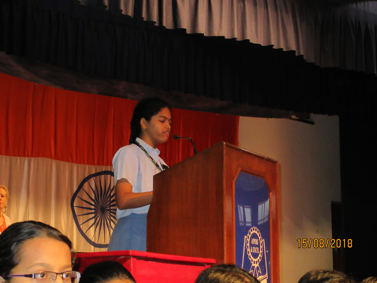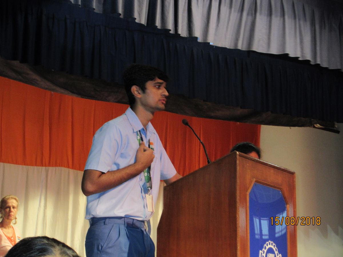 Independence Day was celebrated with great fervour in school on the morning of August 15th 2018. The rains decided to play spoilsport so the hoisting of the National Flag was done in the school auditorium. The Head Boy, Aakash Jajoo and Head Girl, Nidhi Sajit Menon gave inspiring speeches on the sacrifice made by our great leaders and they also appealed to all present to bring about more changes to help India progress further.