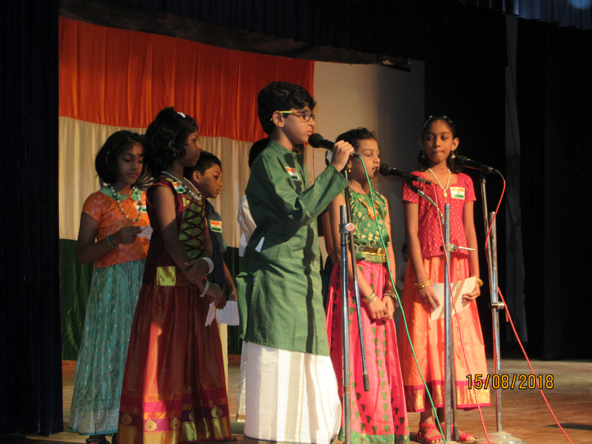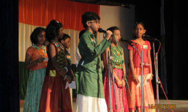 This was followed by a variety entertainment programme – a very colourful variety of song and dance. It began with a beautiful presentation of the famous song “India naadu enn veedu”, by the students of Class 5 . Up next were Tamil speeches on National Integration by the students of Class 4 and the ‘Role played by Women’s squad in the protection of our country’ by the students of Class 5. Krishna Ravishankar of Class 10 then delivered a brief speech about the ancient scientific heritage of India and he also sang a song about Bharat. ‘Ae Watan’ was the song rendered by the students of Class 10 who took the stage next. A fitting finale to the days programme was a dance performance by the students of Class 9 who inspired and aroused patriotic feelings in the minds of all those present as they danced to the tune of “Maa tuje salaam” and “Rang de basanti”.