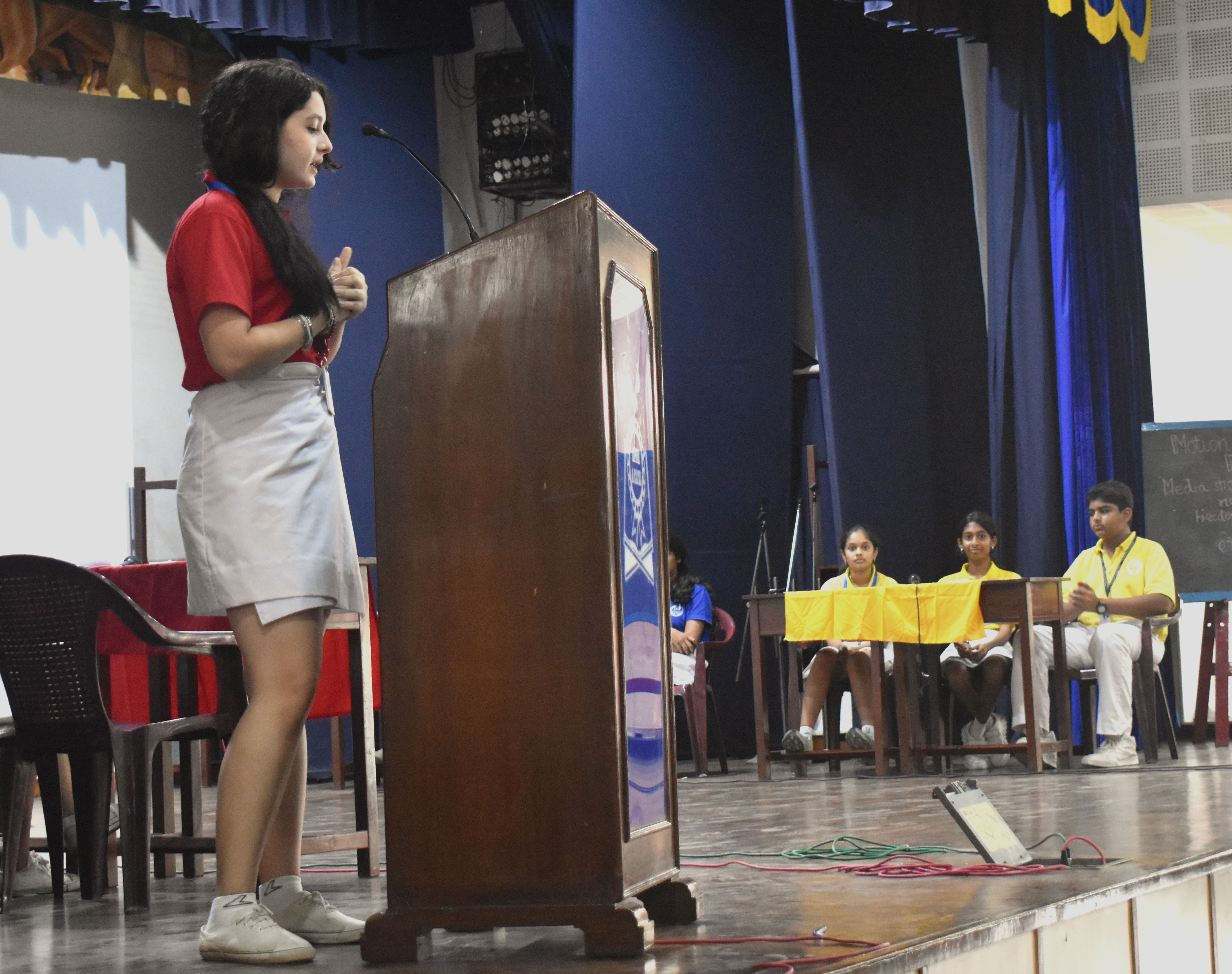 The Inter-house Debate Competition was held on 20th October, 2023 in the school auditorium. Students from classes 8-12 were eligible to participate with 3 participants in each Team from each house.