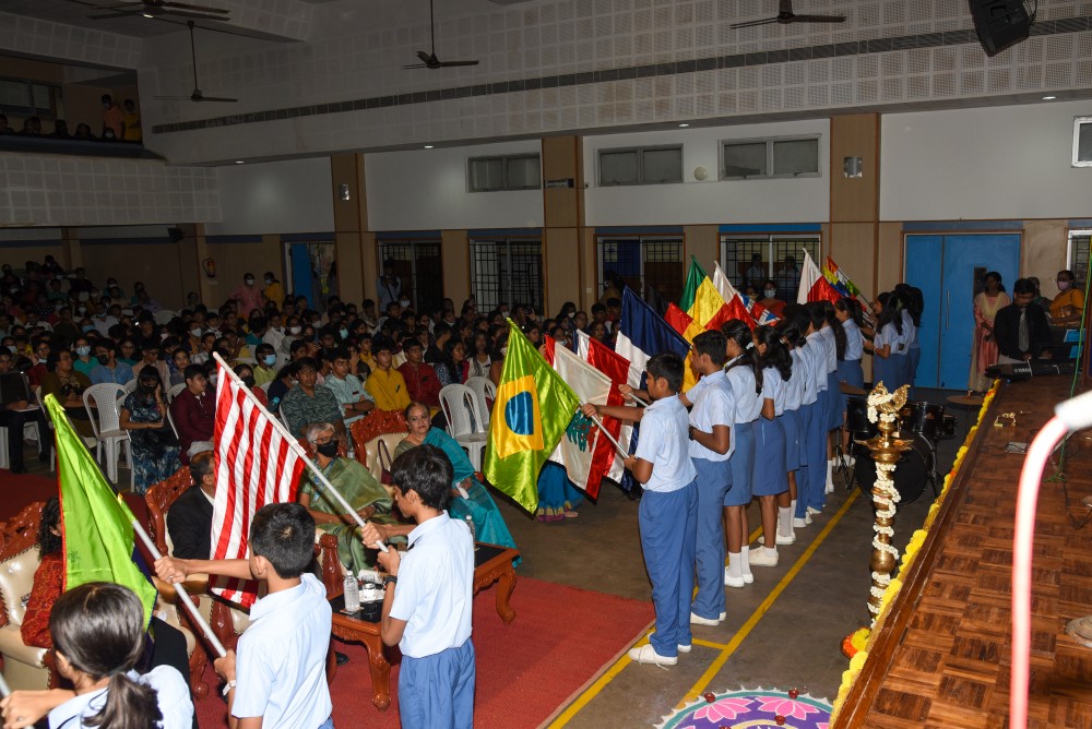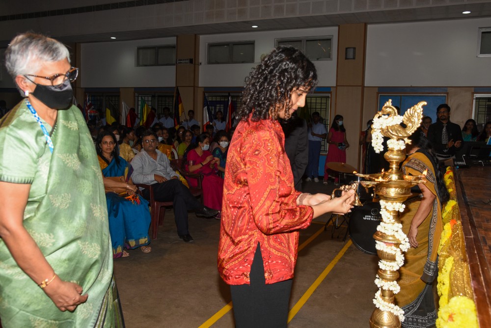 SISHMUN 2022 began with the entry of the flag bearers to the strains of Sir Edward Elgars ‘Pomp and Circumstance.’ Ann Susan George the Deputy Secretary General of SISHMUN 2022 was the flag bearer of the UN flag and the school Flag was held by Laksh Chordia, Head Boy for the year 2022-23, and the Secretary general of SISHMUN 2022. The Chief Guest, Shri.T. S. Tirumurti lit the traditional lamp and inaugurated SISHMUN 2022.